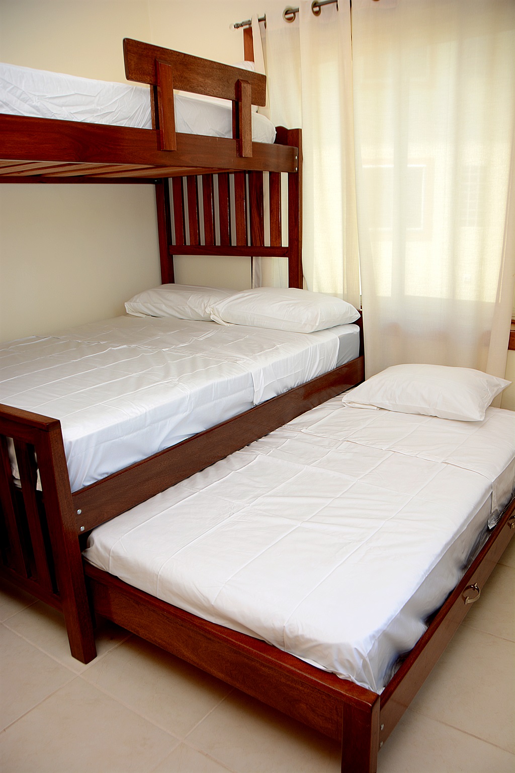 • Second Bedroom: Queen-size bed and a convertible bunk bed system for two Twin beds.