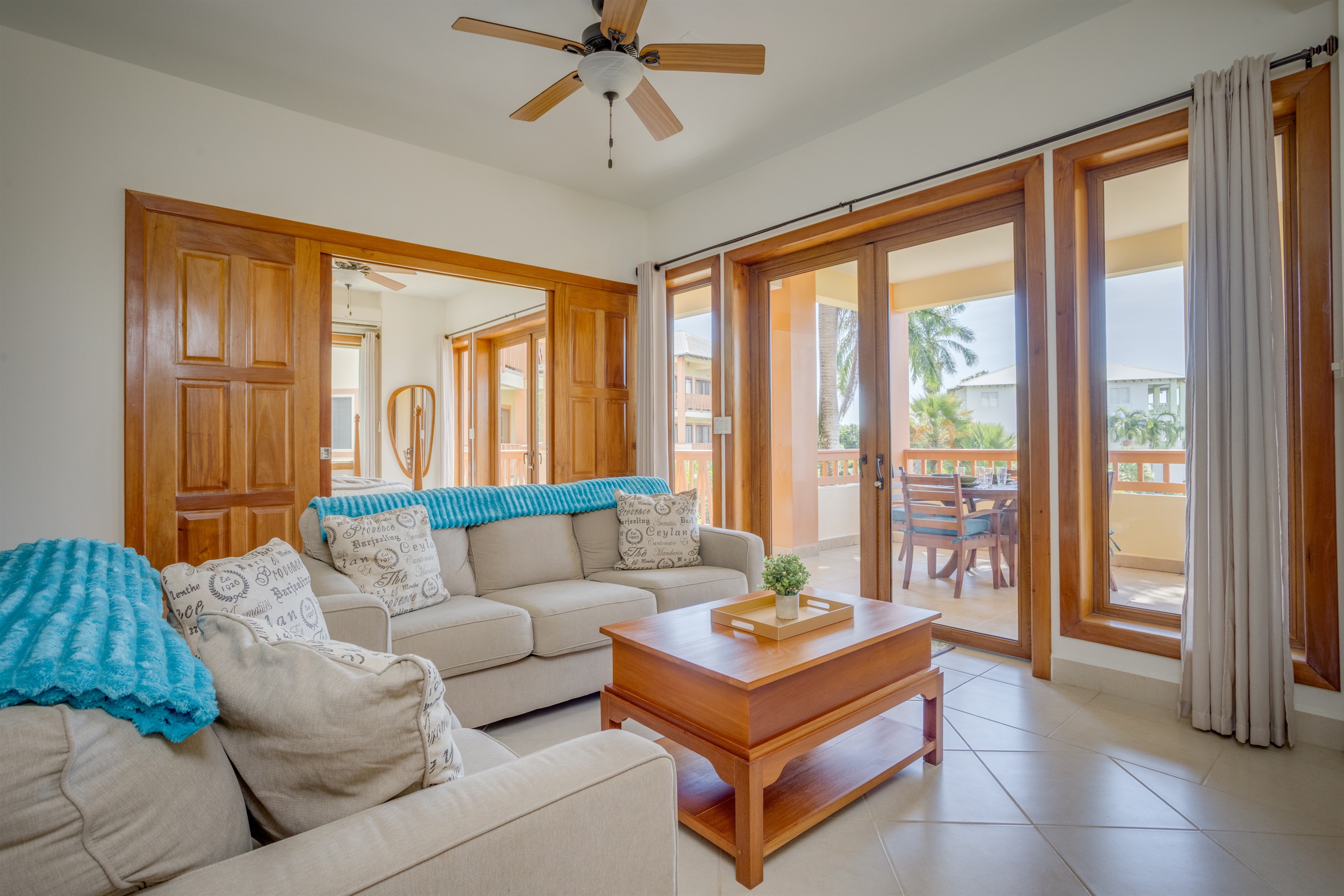 3 Bedrooms • 2 Bathrooms 2 Baths • Sleeps 4-6Discover your perfect tropical getaway at Villa 422, a spacious 3-bedroom, 2-bathroom condo on the second floor of Building 4. This unit is decorated with taste and comfort in mind, offering a cozy, modern atmosphere ideal for both families and couples.