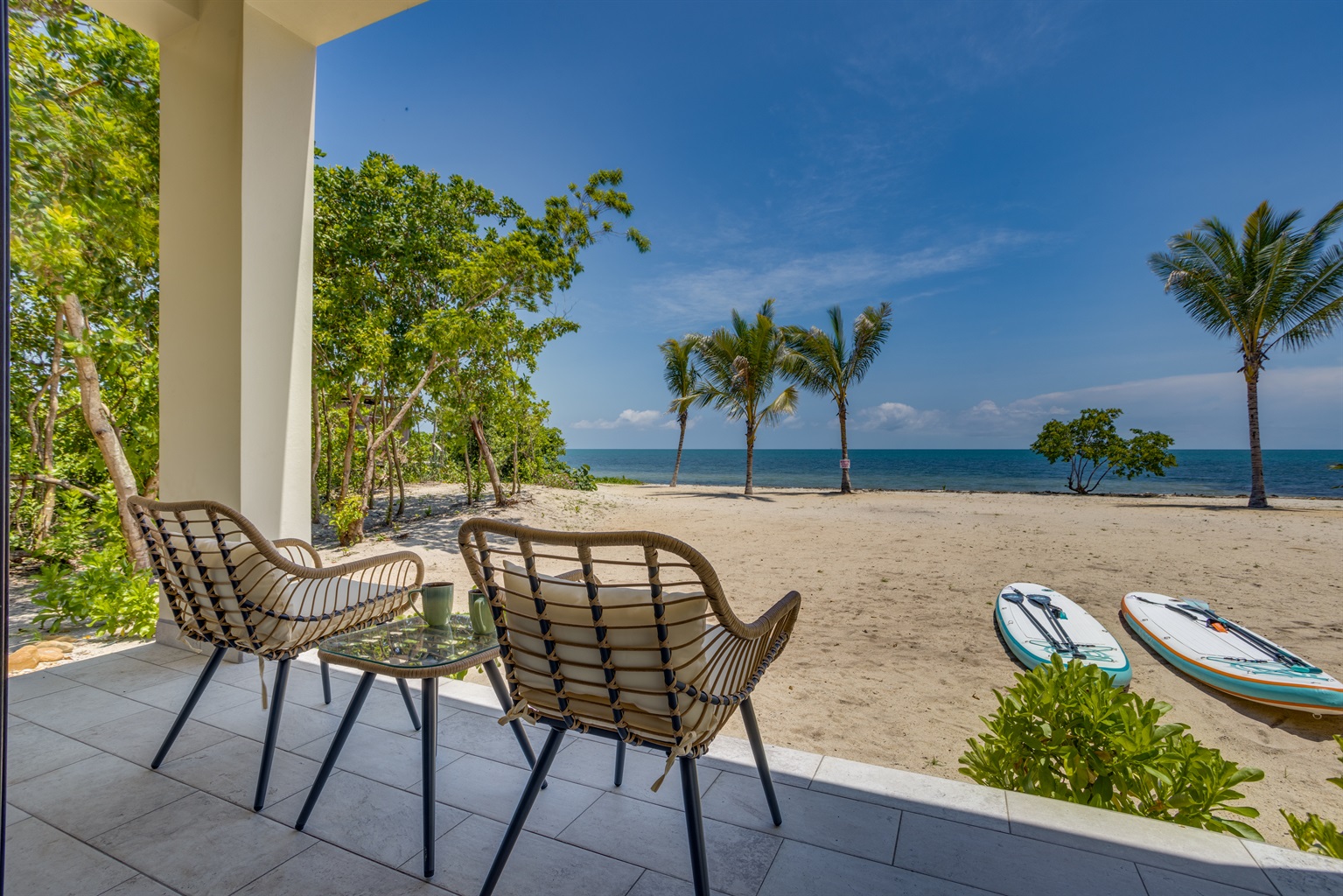 One of the highlights of Tropical Latitude is its large rooftop living area, where you can take in breathtaking 360-degree views of both the sparkling Caribbean Sea and the majestic Maya Mountains. Whether you're enjoying a morning coffee or an evening cocktail, the rooftop is the perfect spot to unwind and take in the beauty of Belize.