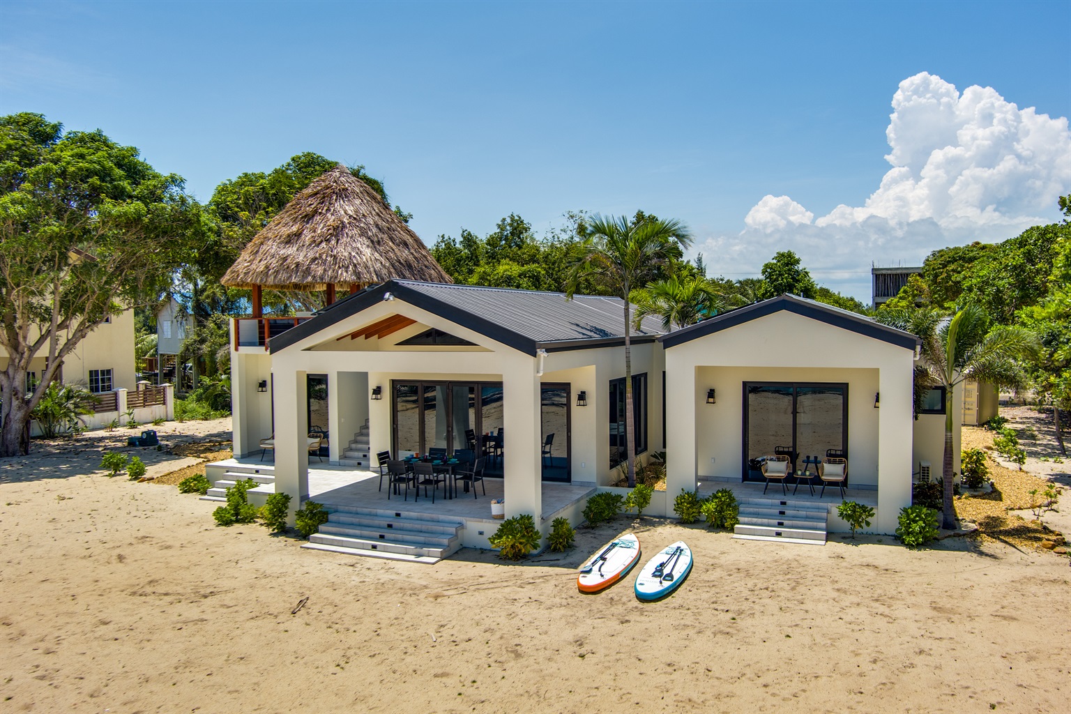 3 Bedrooms • 3 Bathrooms (2 full, 1 half) 3 Baths (2 full, 1 half) • Sleeps 4-6Tropical Latitude – Beachfront Luxury in Placencia, Belize