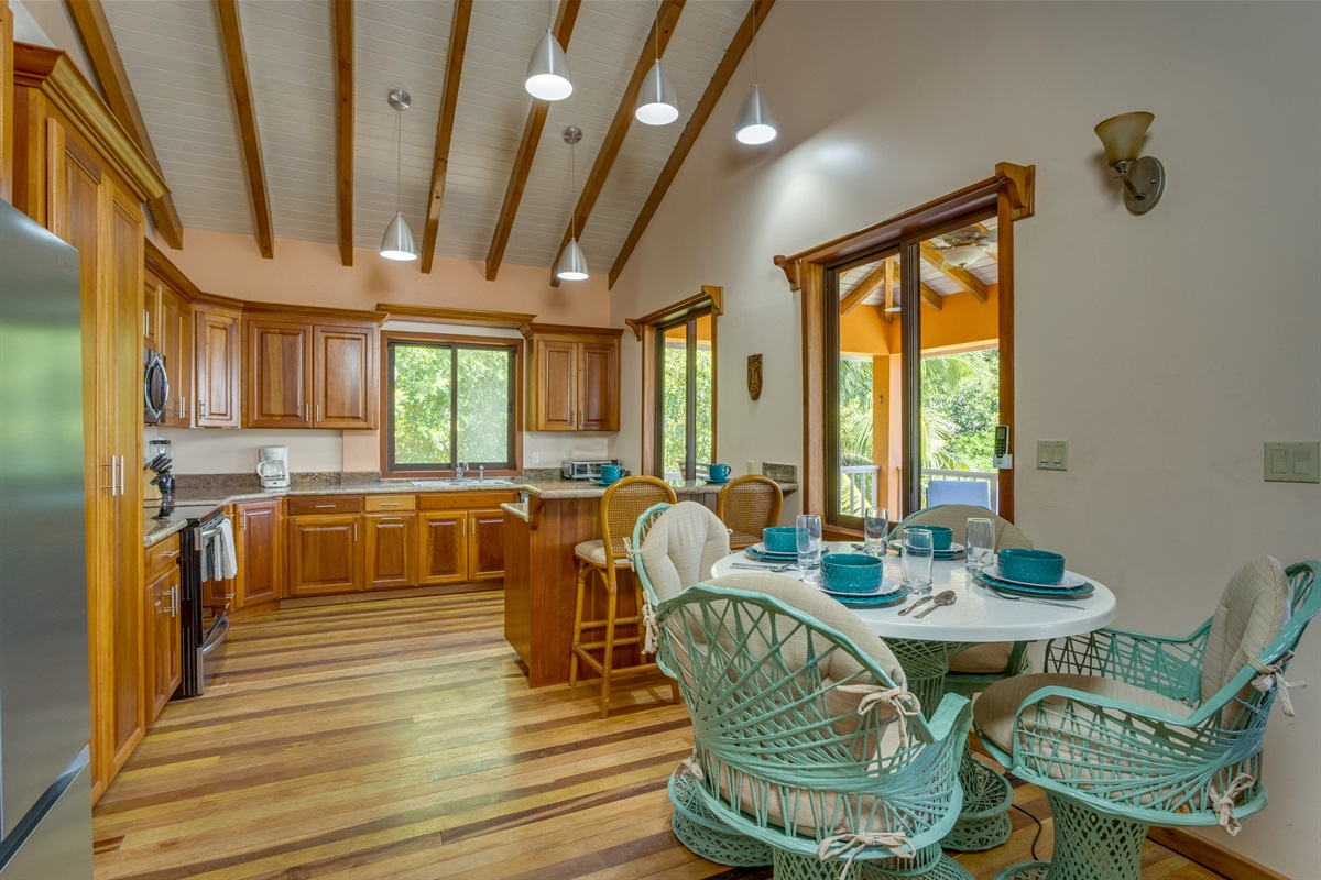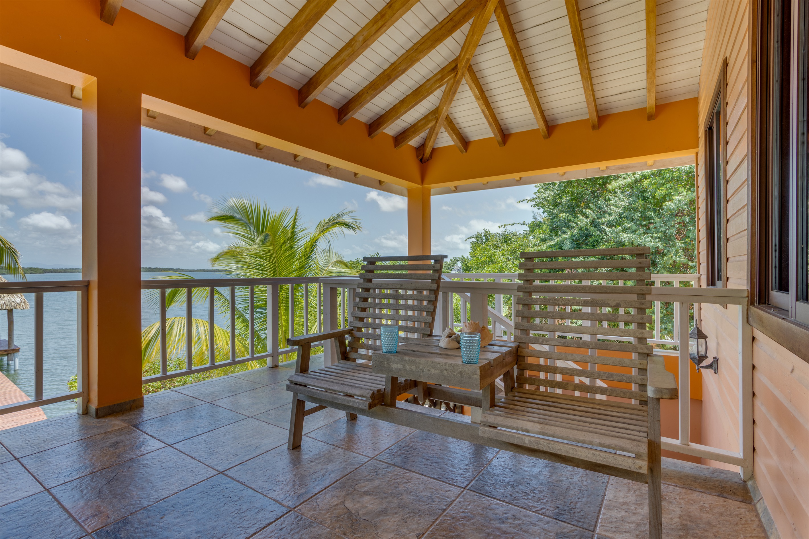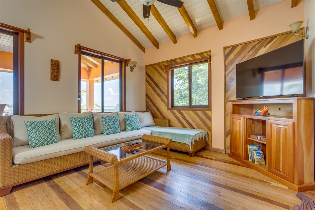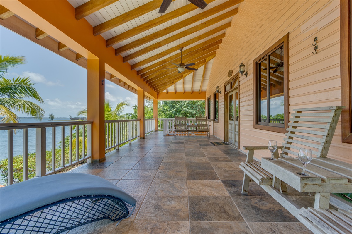 Step onto the massive covered deck overlooking the lagoon and breathe in the serenity of the water and the sounds of nature. Enjoy outdoor dining, morning coffee, or evening cocktails with some of the best sunset views in Placencia.