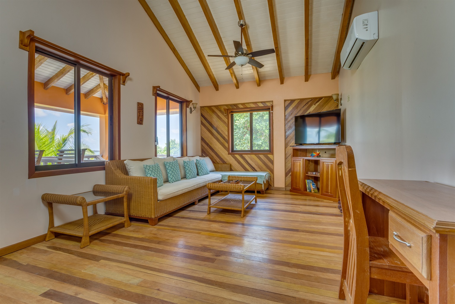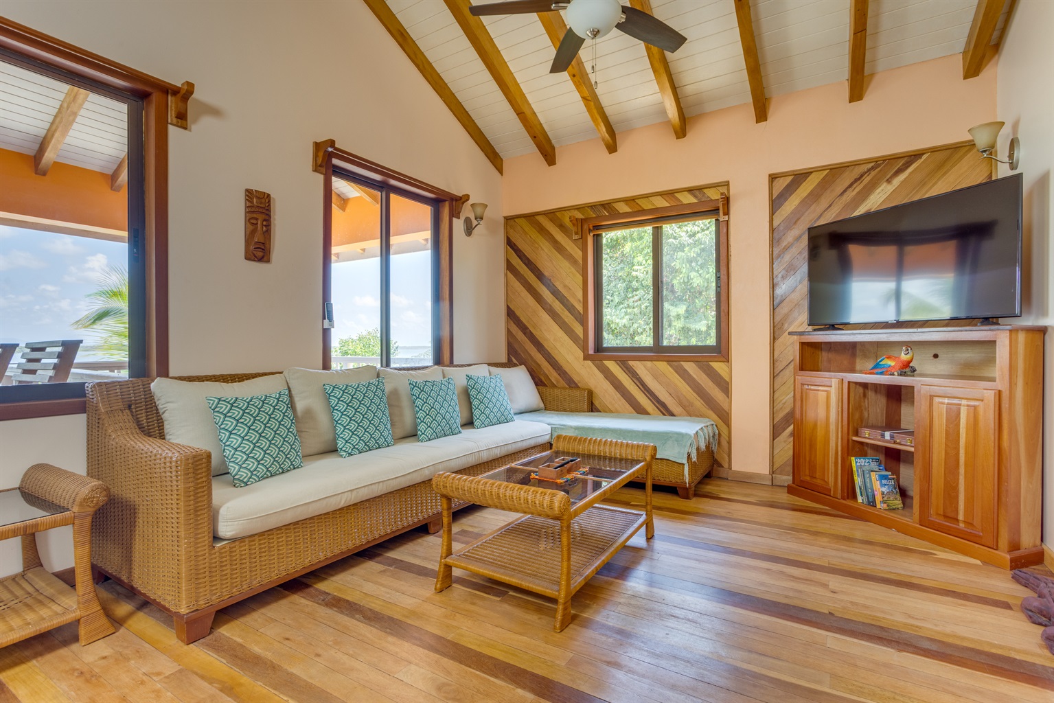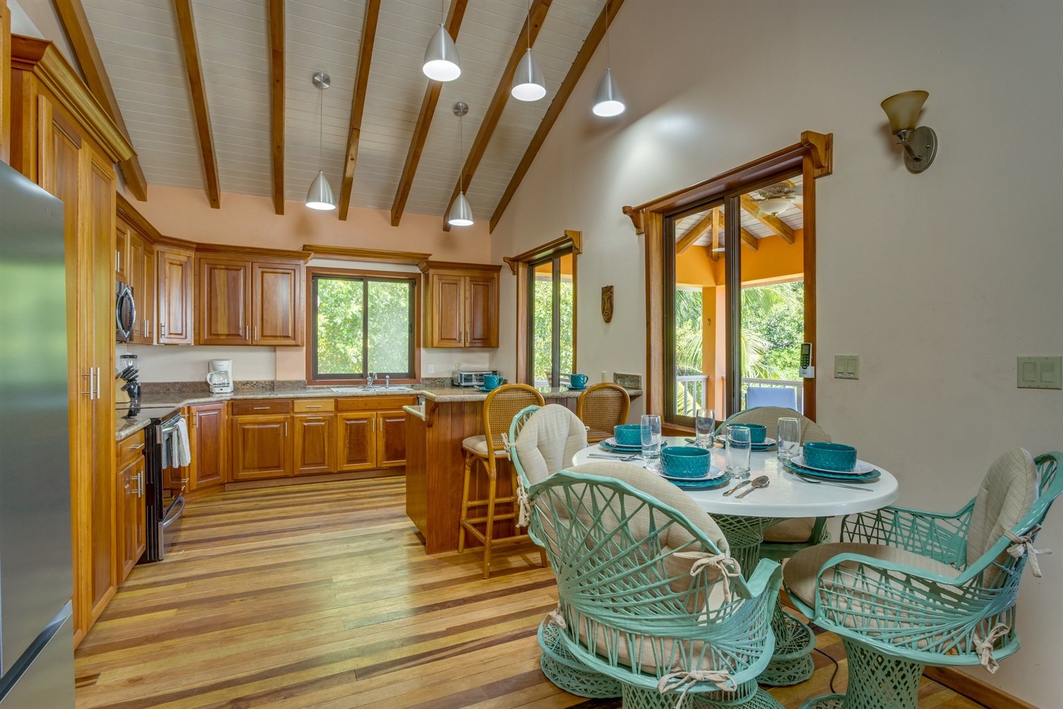 Step onto the massive covered deck overlooking the lagoon and breathe in the serenity of the water and the sounds of nature. Enjoy outdoor dining, morning coffee, or evening cocktails with some of the best sunset views in Placencia.