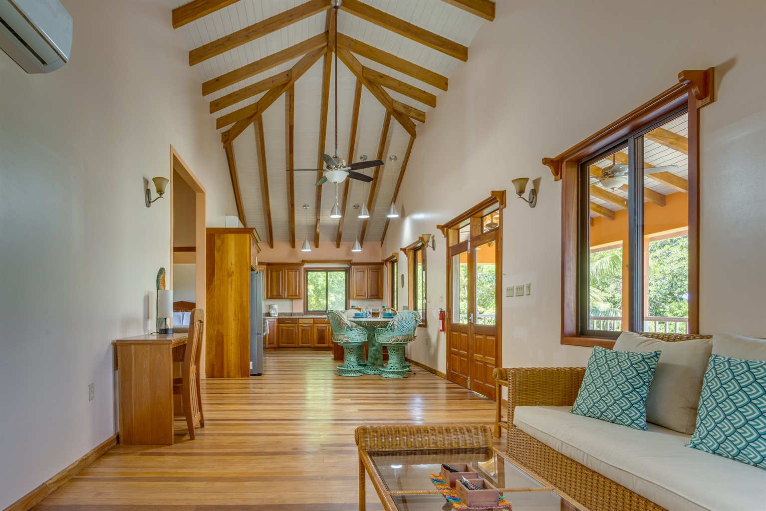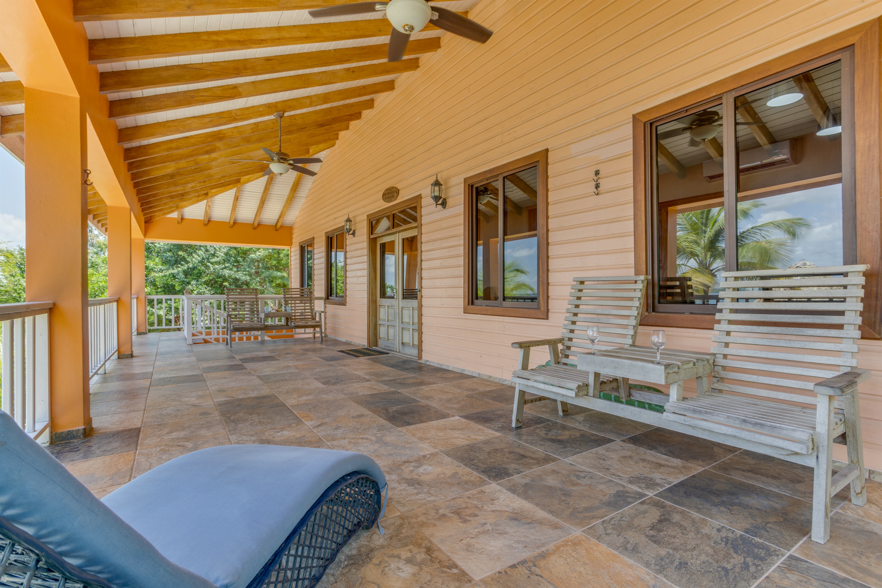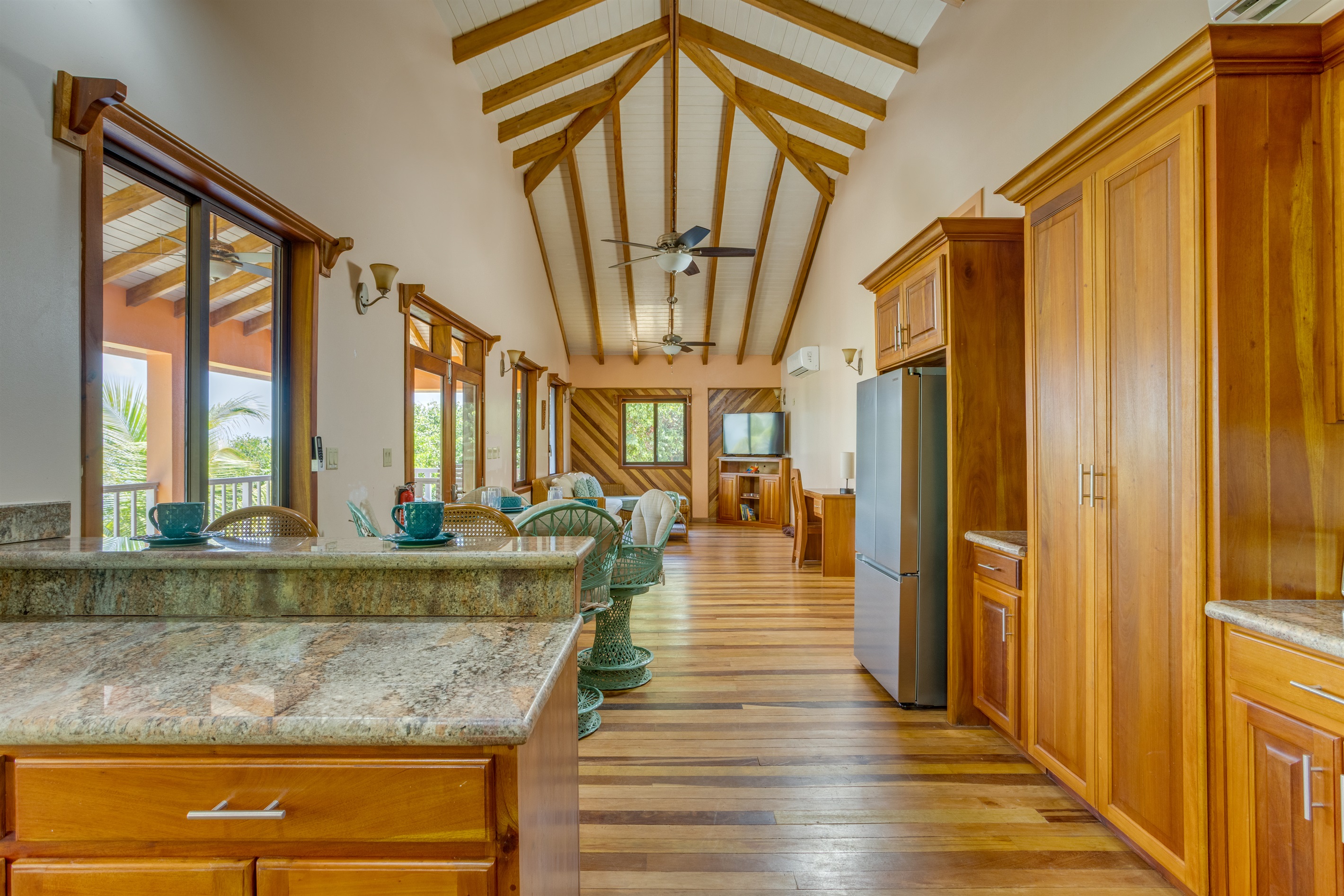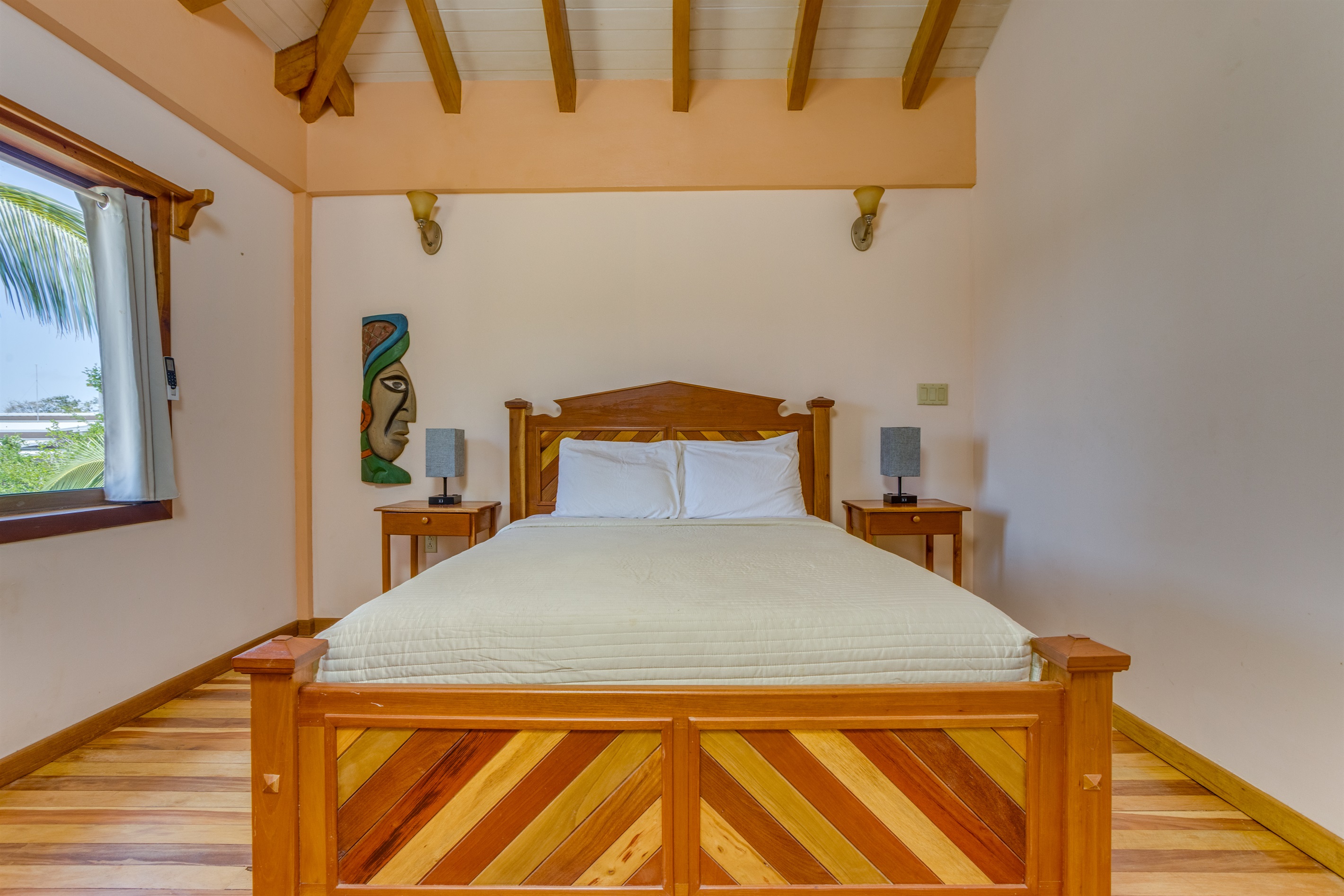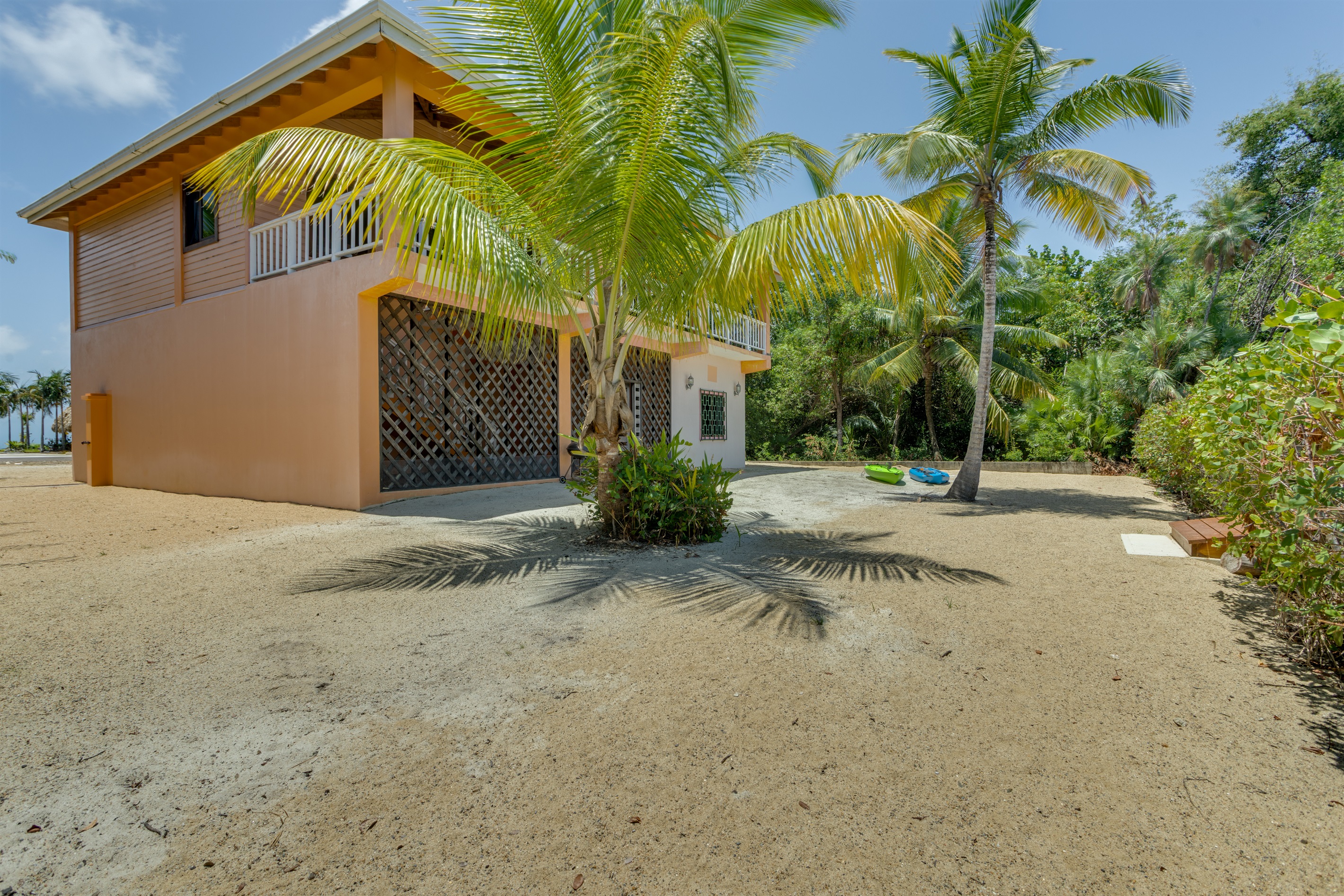 The large fenced yard with a remote-controlled gate provides privacy and peace of mind—perfect for families with children. Native hardwood floors and handcrafted Belizean wood furniture add a rich warmth and tropical charm throughout the home.