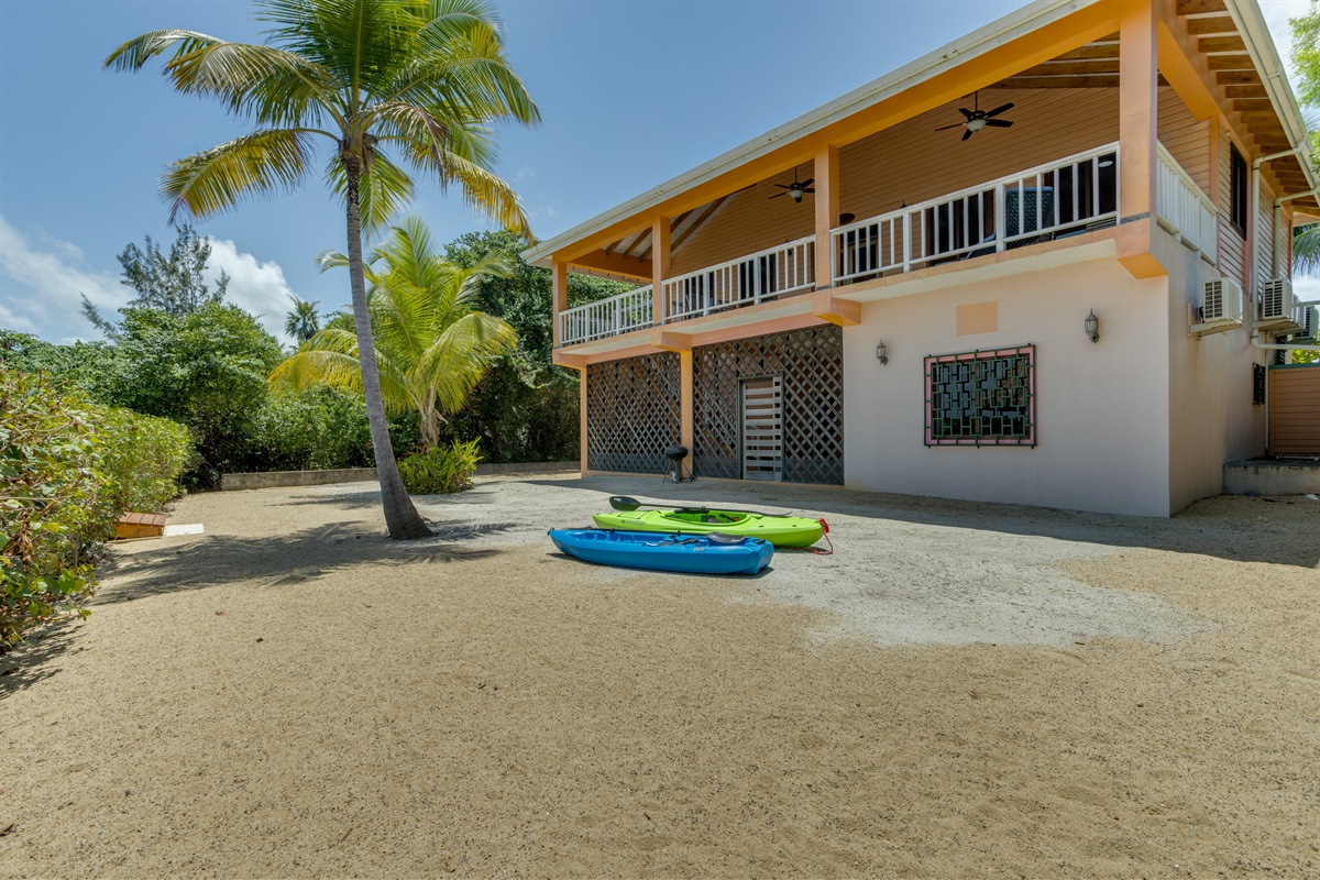 A private dock extends into the calm waters of the lagoon and is the ideal place to relax in the hammock, sip a drink, or launch one of the two provided kayaks to explore the shoreline and mangroves. The lagoon is calm, safe, and perfect for paddling—even for beginners or kids.