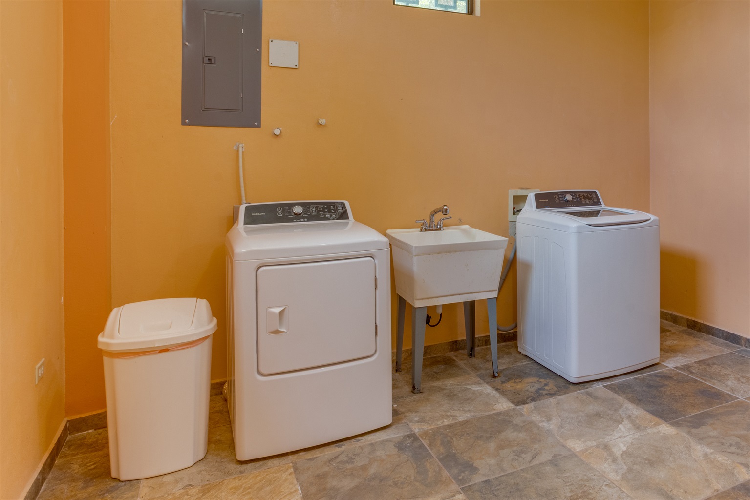 For longer stays or families, you’ll appreciate the **large laundry room** with a washer and dryer downstairs—no need to pack heavy or go to a laundromat.