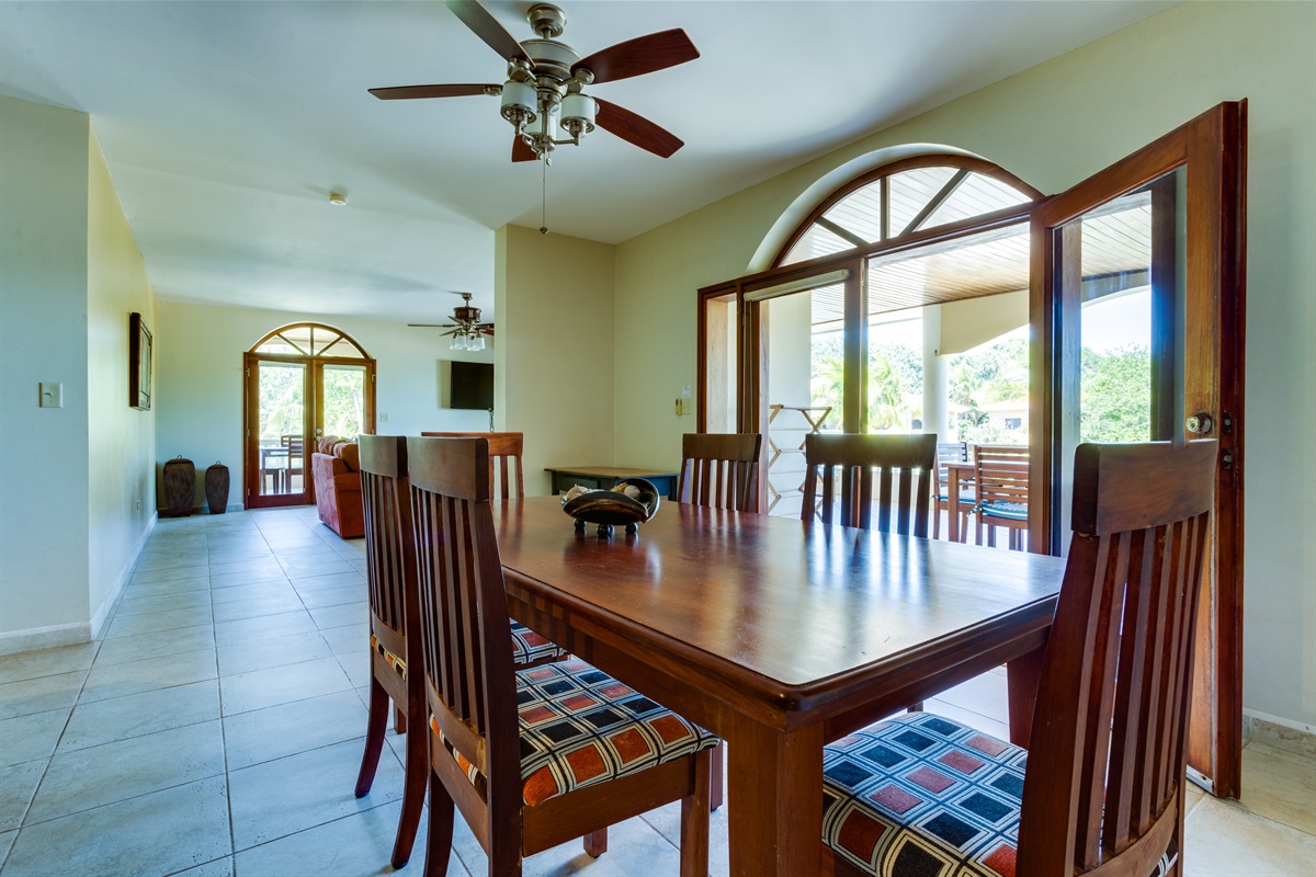 Los Porticos is ideally located with easy access to nearby Placencia village but far enough away to be peaceful. The complex has beautiful grounds, a magnificent pool and a beautiful beach on the Caribbean Sea. Placencia village has a variety of dining choices ranging from local to gourmet cuisine. If you choose to prepare some of your own meals in the well-equipped kitchen there are numerous grocery stores with excellent selection. A convenient choice for an excellent meal is La Dolce Vita restaurant, located on-site at Los Porticos.
