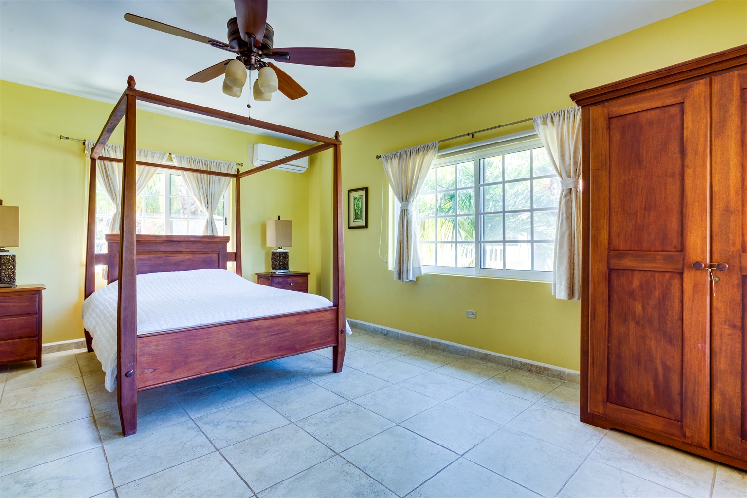 This beach side villa is in a quiet complex with all the conveniences of home. Not only is there 1,650 square feet of indoor living space, but perhaps the best feature is the 600 square feet of outdoor living space. When you are not on the beach or at the poolside, you can enjoy the Caribbean breeze from your spacious, private veranda.