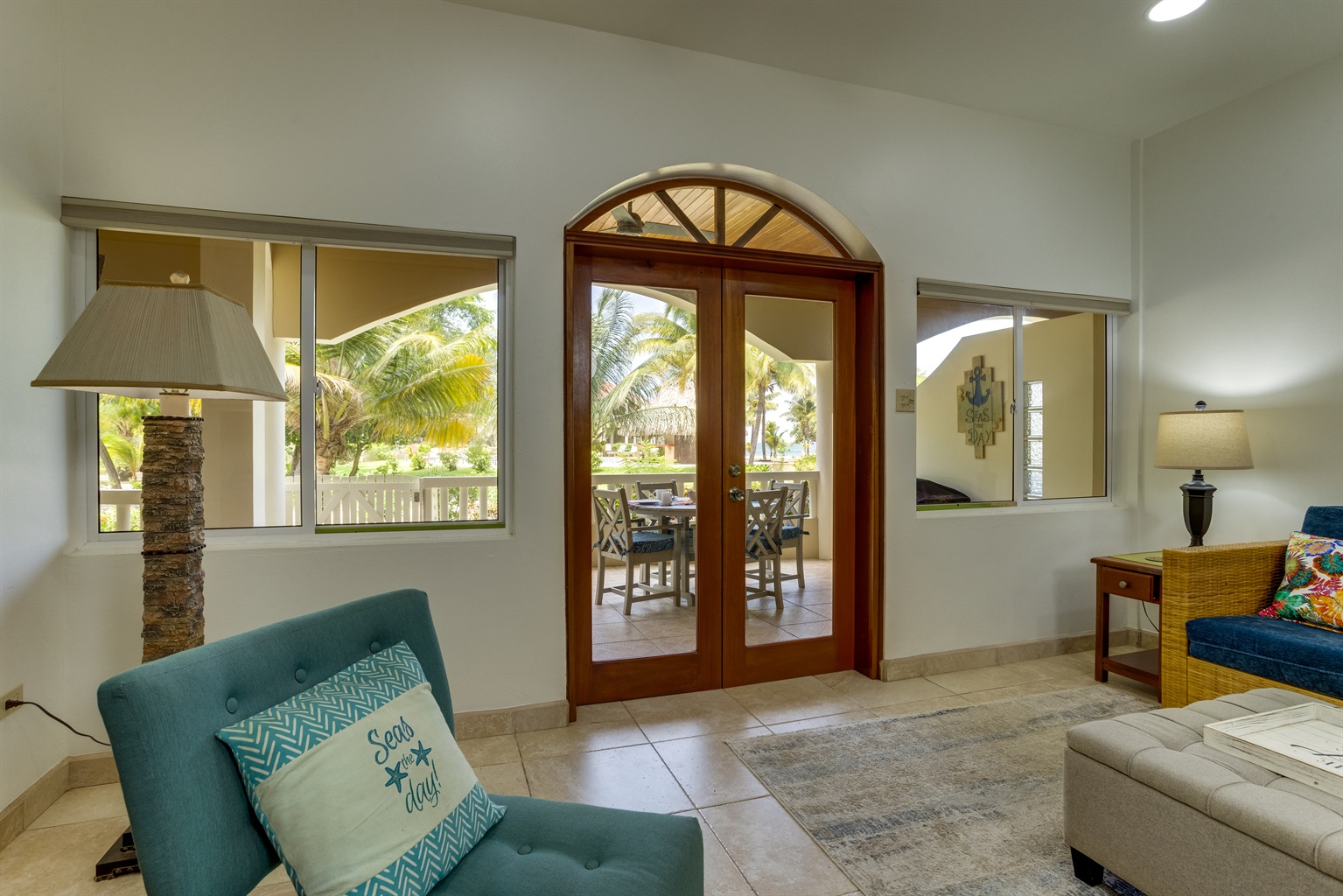2 Bedrooms • 2 Bathrooms 2 Baths • Sleeps 3-6Welcome to Los Porticos 3A, your luxurious home away from home on the breathtaking Placencia Peninsula. This stunning ground-floor villa offers an expansive living space, meticulously designed to provide the ultimate in comfort and convenience. As soon as you step inside, you'll be greeted by a bright and airy atmosphere, with ample room to relax and unwind.