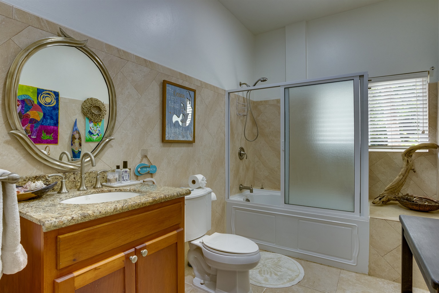 This two-bedroom villa is perfect for families or small groups, featuring two queen beds that promise a restful night’s sleep. The primary bedroom is a true sanctuary, complete with a queen bed and a luxurious soaking tub, perfect for unwinding after a day of adventure. The second bedroom also offers a comfortable queen bed, ensuring all guests enjoy their stay. Additionally, the living room sofa easily converts into a bed, accommodating up to six people in total, making this villa ideal for both couples and larger groups.