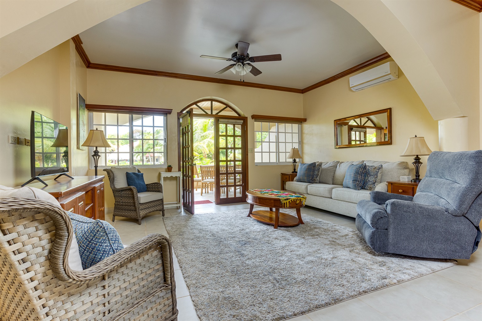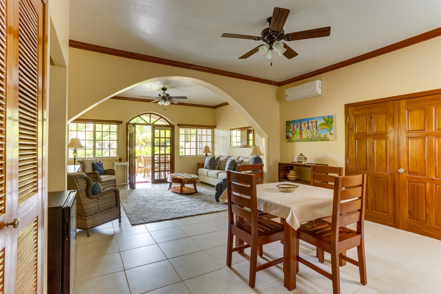 2 Bedrooms • 2 Bathrooms 2 Baths • Sleeps 4-7Welcome to Los Porticos 6A, a luxurious ground floor condo located just one mile from Placencia Village that is a stunning new addition to the Los Porticos rental pool. This stunning vacation rental features two large bedrooms, both with queen beds, and an additional queen sofa bed. The master bedroom also includes a day bed, perfect for a child, allowing the condo to comfortably sleep up to seven guests.