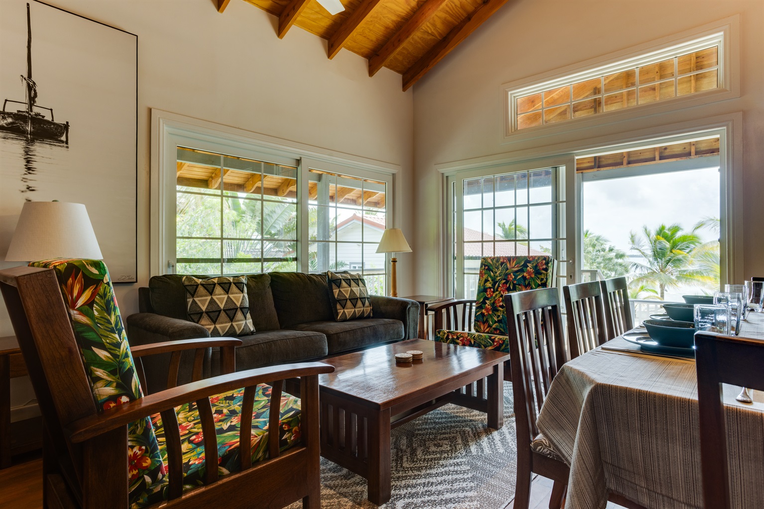 Outdoors you can soak in this seaside experience, relaxing on beach furniture beneath coconut trees or on the covered 190 sq ft front porch offering shaded sea views. It's the perfect spot to dine or relax with your favorite drink, cooled by gentle sea breezes.