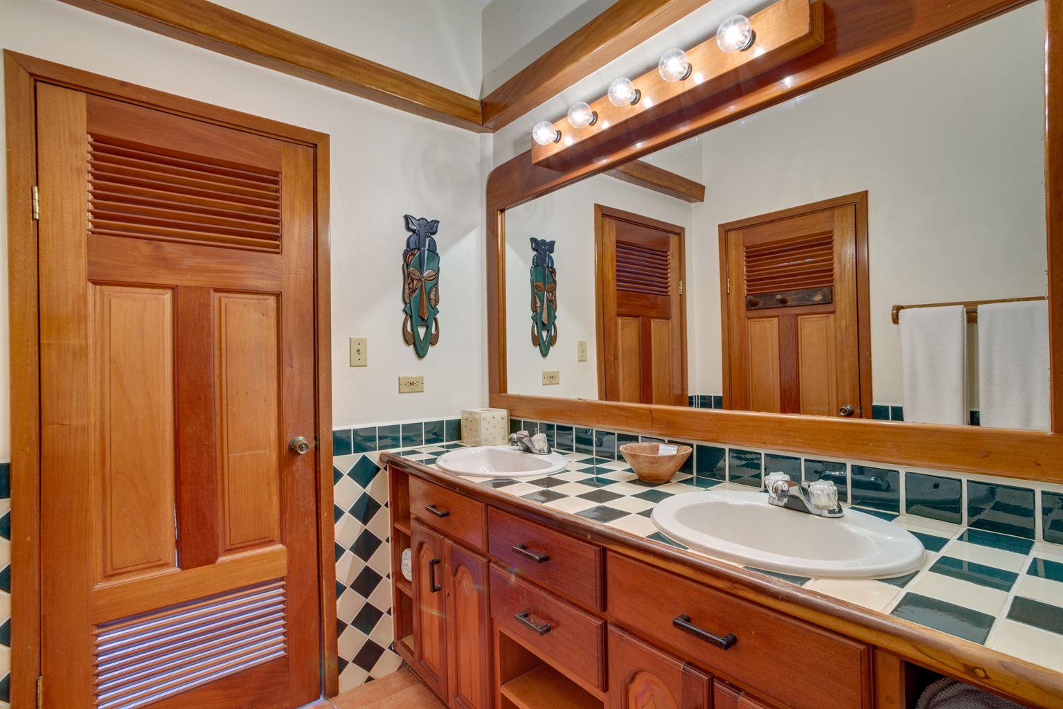 • Dual sink bathroom with doors to both the bedroom and the living room
