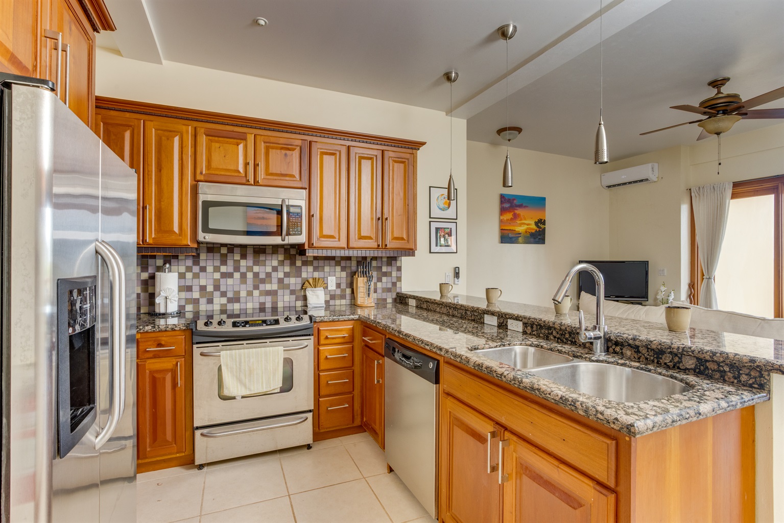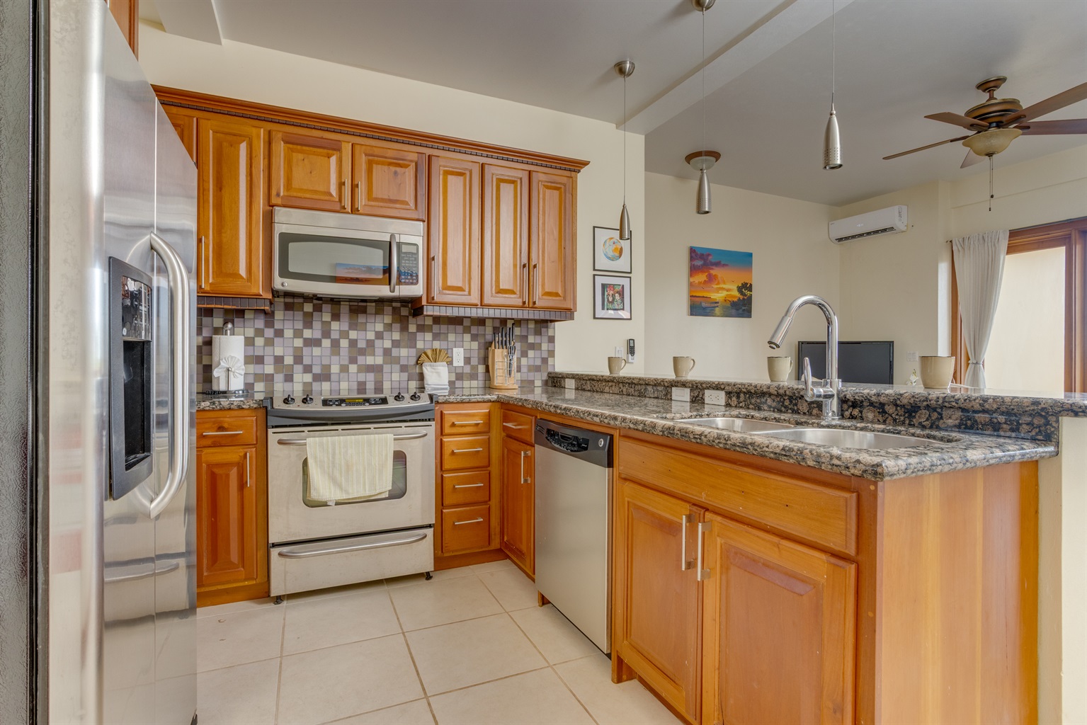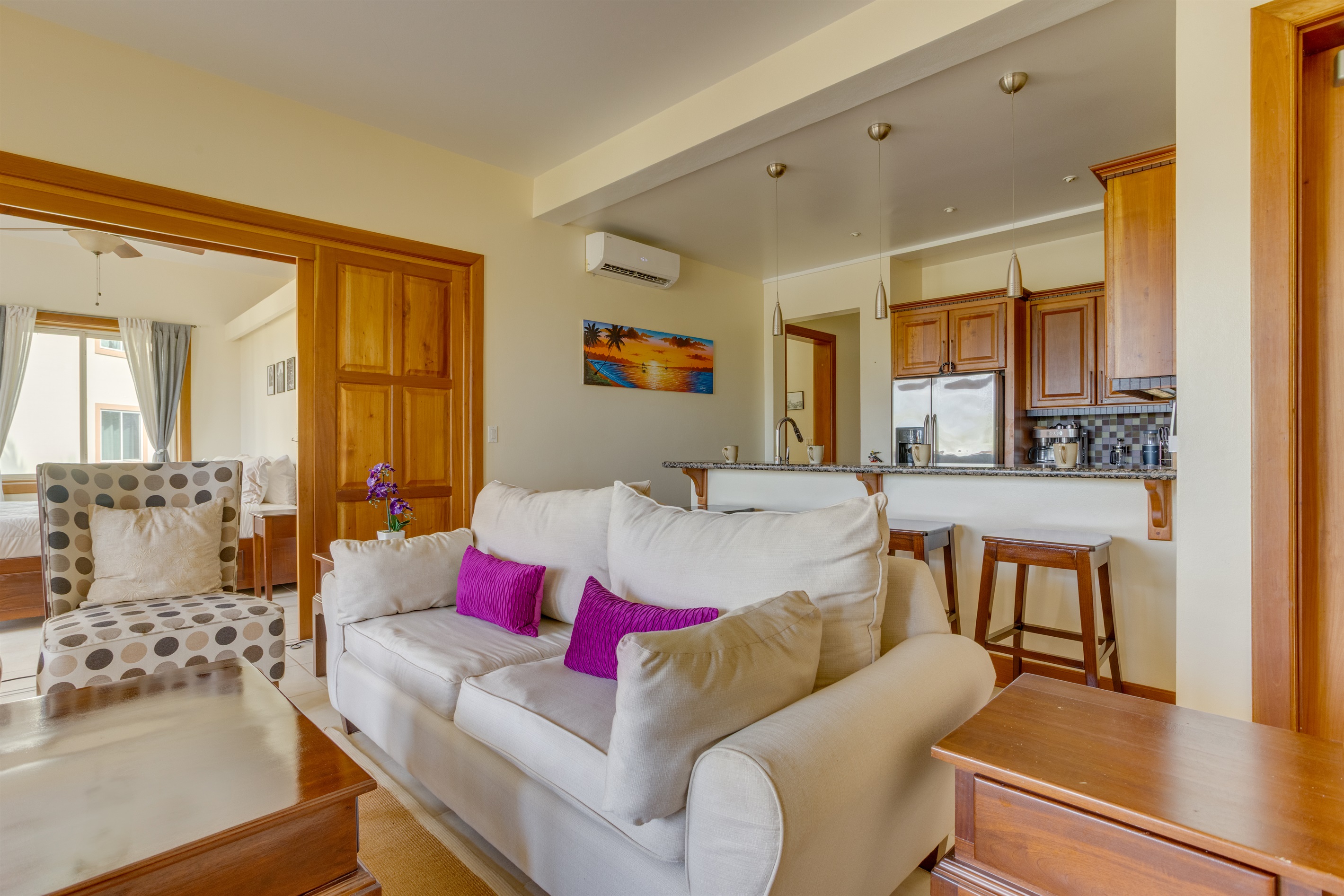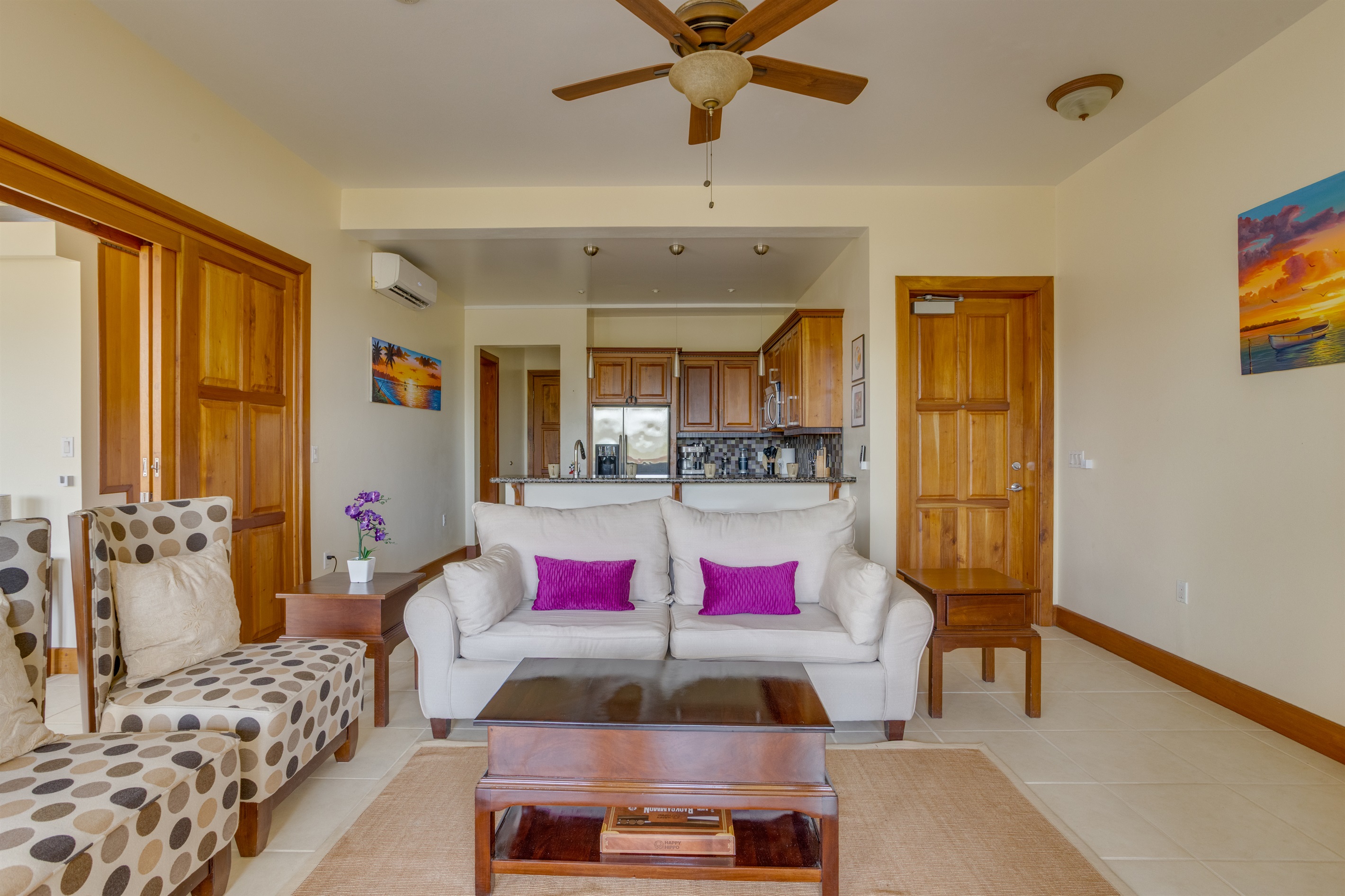 Unit Features: The spacious living area opens to a large balcony, perfect for enjoying the coastal air and relaxing views. The full kitchen is equipped for dining in. The unit includes AC, high-speed Wi-Fi, and a convenient in-unit washer/dryer.