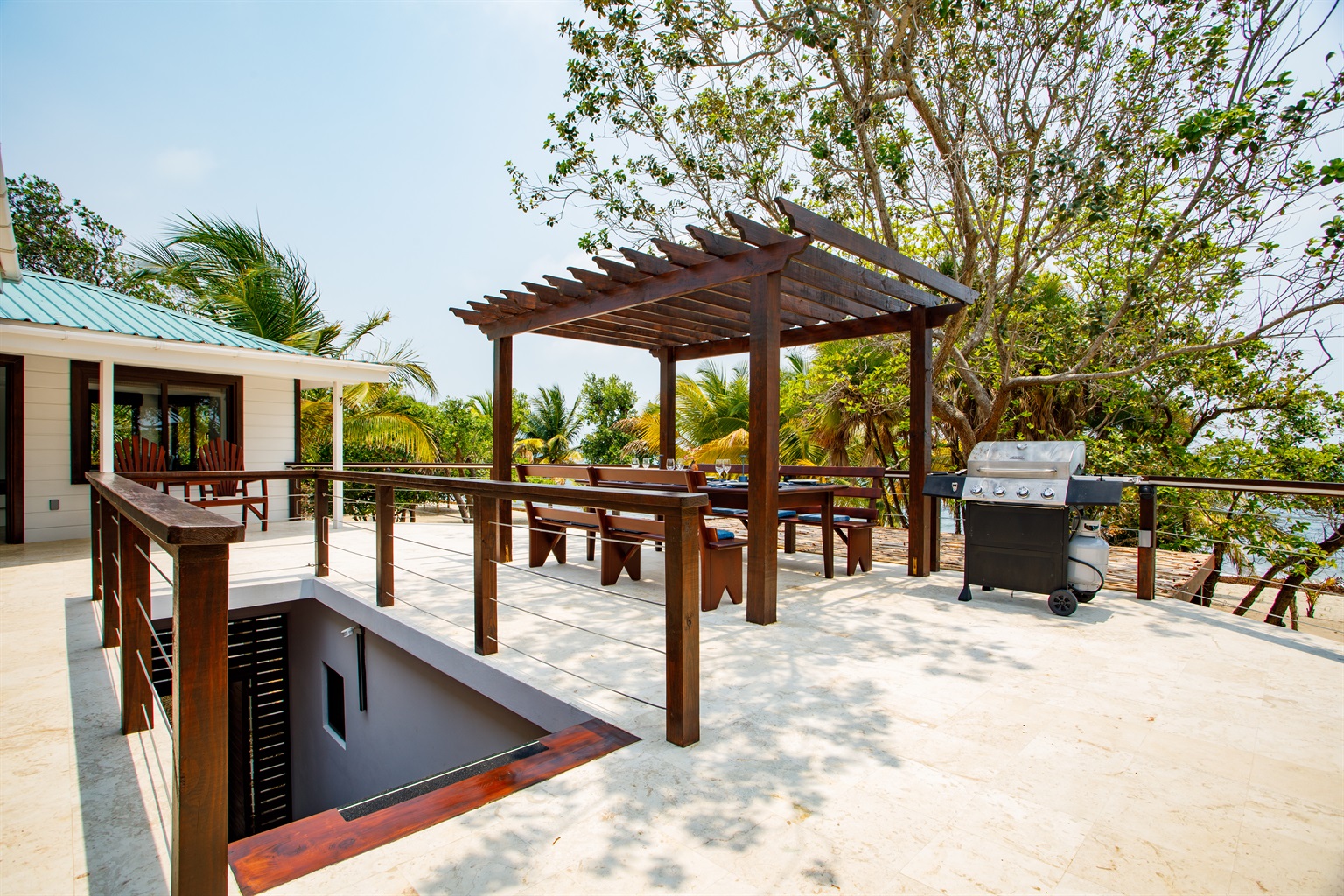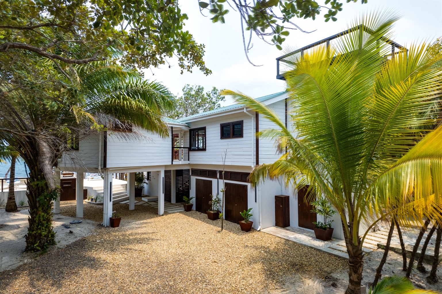 The house is designed for outside living. There are three decks (roof top, main deck, pool deck), that allow for maximal relaxation. On the roof top deck you can enjoy the sunset and views of the entire peninsula. On the main deck, you can spend time in the hammocks, read a book in the shaded seating areas, or entertain guests on the large table. Downstairs is the pool deck with ample space, lounging chairs, barbeque and infinity pool. There is minimal to no foot traffic at this beach in Placencia. Enjoy the new stand up paddle boards to explore the ocean at your leisure.