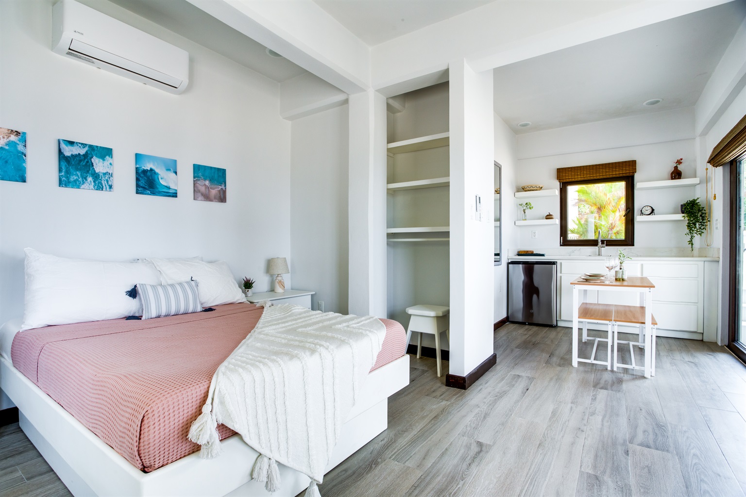 From the rooftop deck, you can oversee the entire peninsula and enjoy sunset cocktails. The studio is located at beach level, just steps away from the sea.