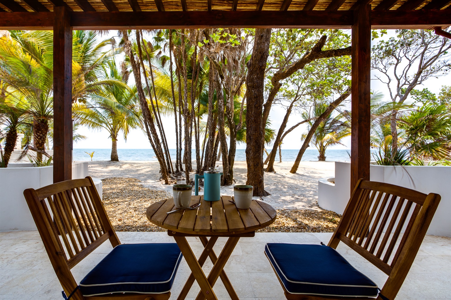 Slow loris is located in an off the beaten path part of the Placencia beach, yet it is less than a mile from the local airstrip. The town of Placencia with it’s picturesque shops, restaurants and bars is 2 miles south and Seine Bight, a local community with infrastructure for grocery shopping is a little over a mile to the north. The beach has nearly no foot traffic, the water is calm and commonly you will enjoy a constant breeze and can watch pelicans and other birds dive into the water.