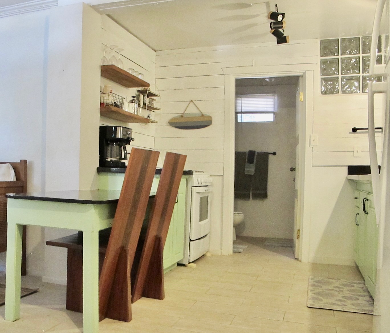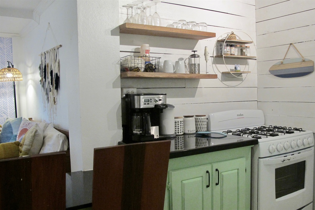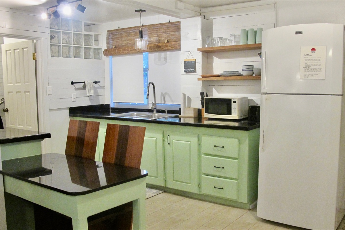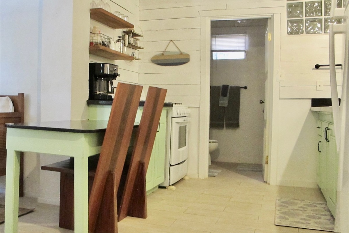 The ground floor Bungalow comes fully equipped with all modern amenities, including a full refrigerator with ice and water, a gas oven and stovetop, and a microwave. All essential small appliances, dishes and accessories are included and the kitchen is very spacious for preparing your favorite meals. You have your own private entrance to this unit as well.