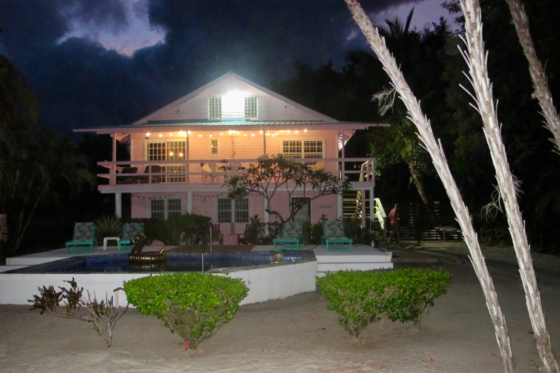 Grocery stores are located a short distance away by car or golf cart. The bungalow has 1 bedroom and 1 bathroom, as well as a twin day bed in the living room. It is perfect for couples, or couples with a child. There is a covered porch for simply enjoying the peaceful beach breeze and ocean waves. The pool is located in a perfect balance of sun and shade with places to lounge deck side, or there is a large bench in the pool for relaxing. Please make use of the kayak we have as well, although note it must be locked up at night, any loss will be billed back to the guest.