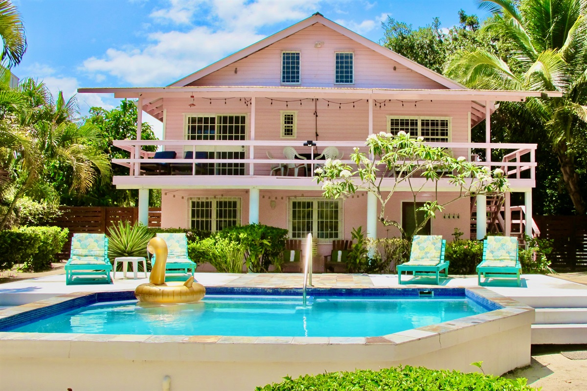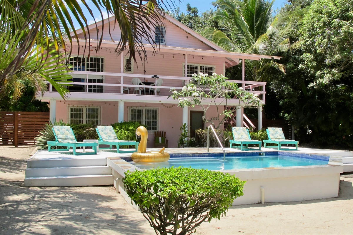 The Sunny Bungalow 1 Bedroom is located at mile 17.5 of the Placencia Peninsula in the Community of Surfside. A bright, modern and clean home awaits you! Enjoy stunning sunrises from the beach, swimming in the pool or ocean, kayaking in the ocean or simply relaxing under the palms.