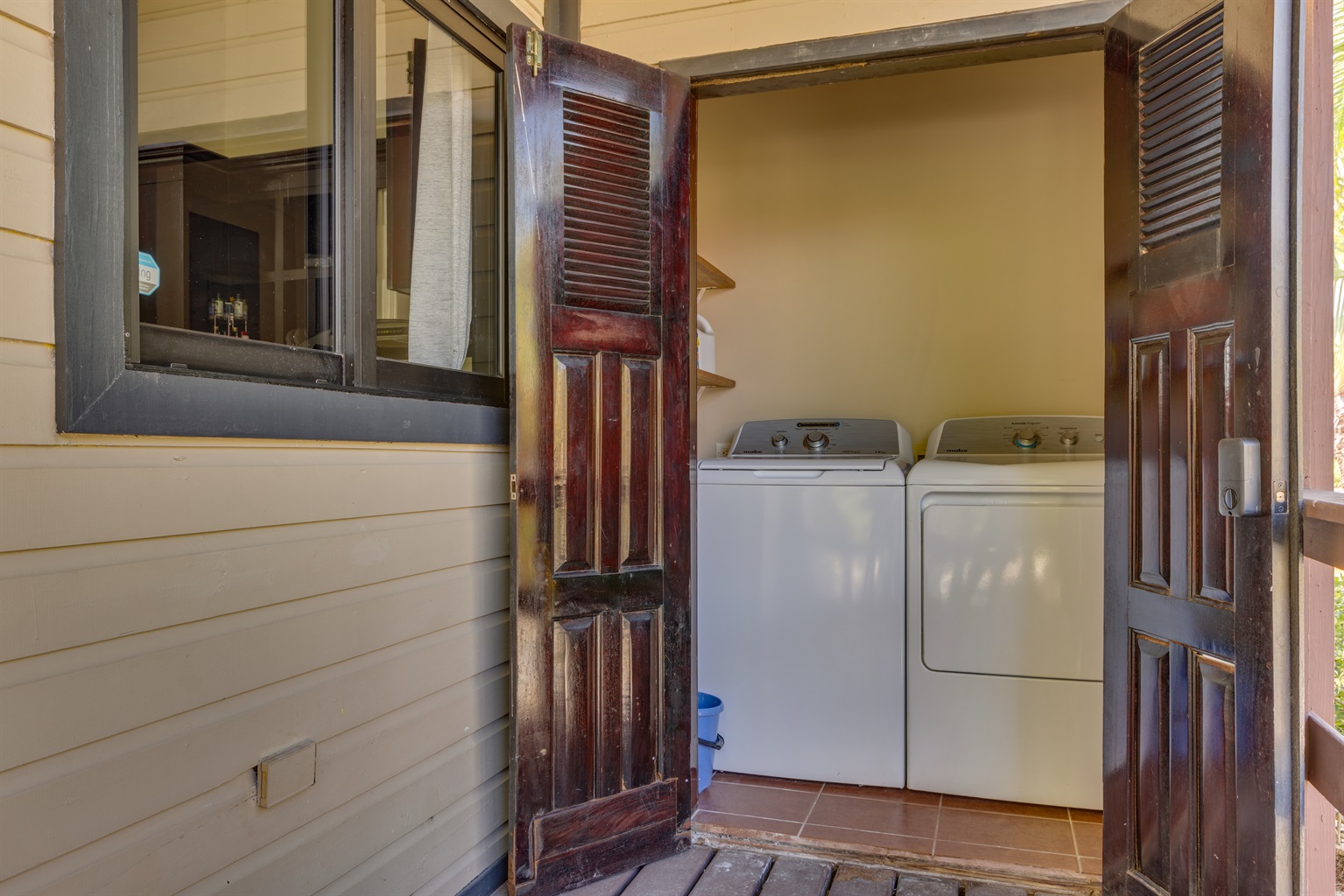 Upstairs, you’ll find a cozy loft with a futon and twin bed, perfect for extra guests or kids. The entire home is fully air-conditioned, ensuring a cool and restful environment day and night.