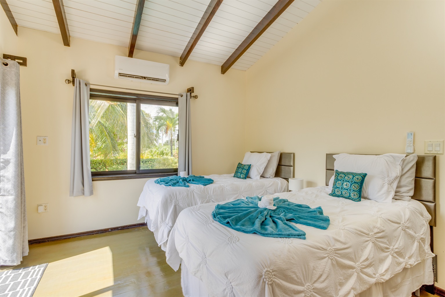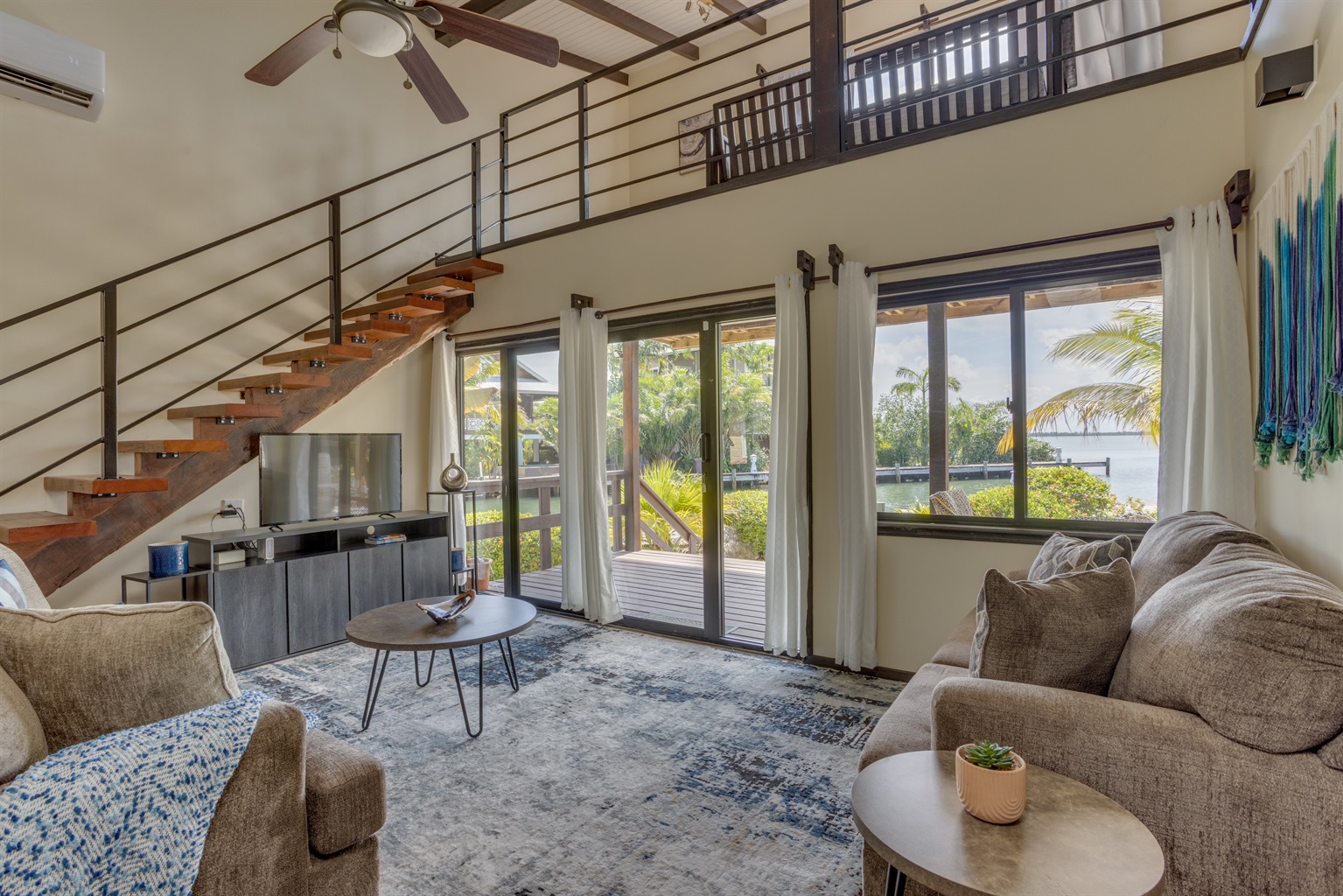 This bright and airy 2-bedroom, 2-bath home features ensuite bathrooms in both bedrooms and private decks where you can enjoy morning coffee, evening breezes, or unforgettable sunsets over the lagoon. A large, fully equipped kitchen opens into a comfortable living area, making it easy to cook, dine, and relax together.