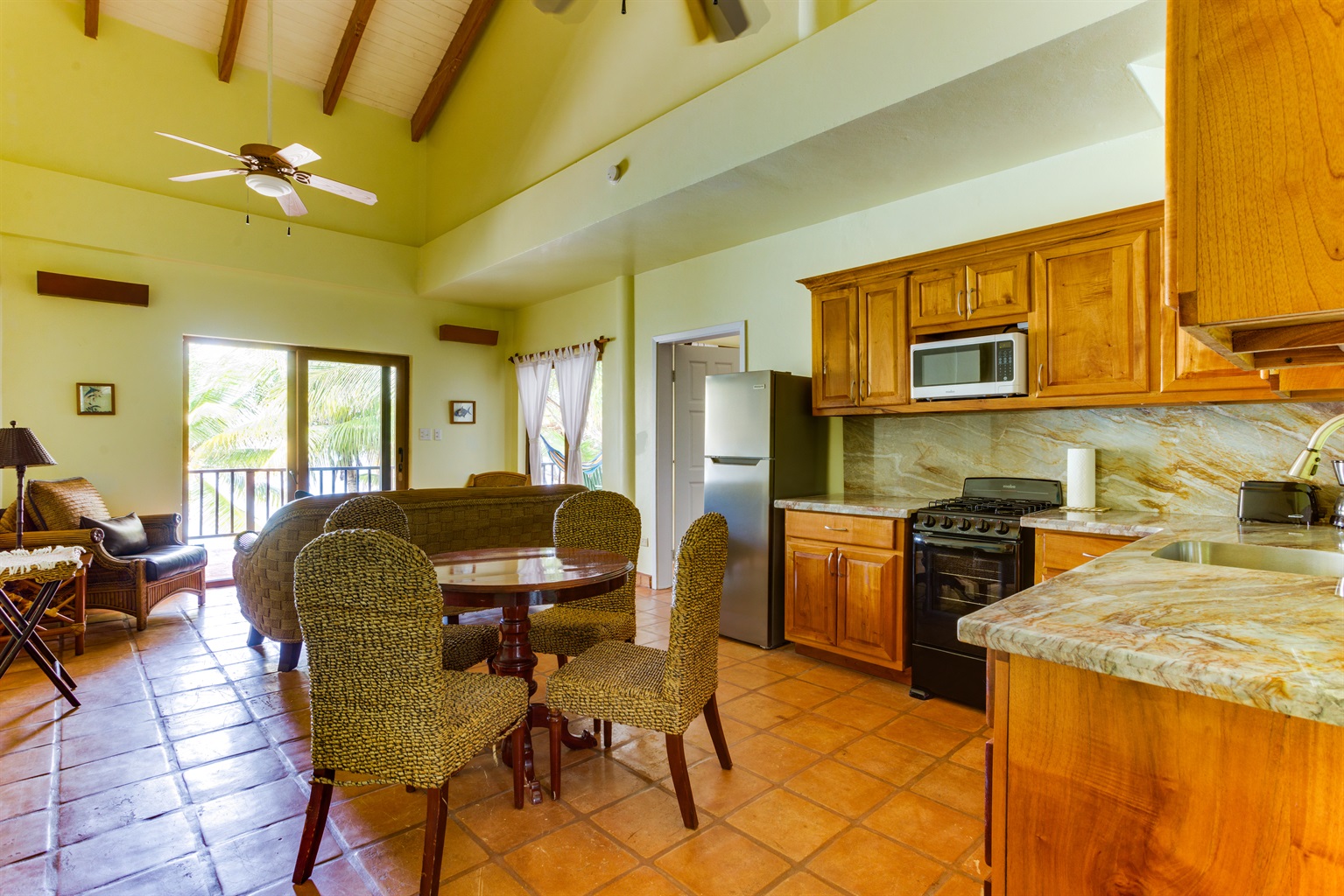 3 Bedrooms • 3 Bathrooms 3 Baths • Sleeps 4-6This 3-bedroom condo has not only an ocean view but also the view of a beautiful coconut grove. This condo comes either with Two King size beds and two twin-size beds or 3 King size beds. The options will be available for those who reserve first. It comes with a big kitchen to prepare meals for a family. Each bedroom has ensuite bathrooms.